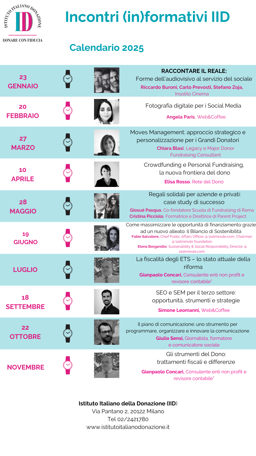 Non perderti l'occasione di seguire i 10 momenti formativi dell'Istituto Italiano della Donazione per il 2024.