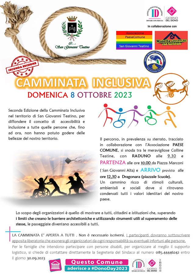 Notevole importanza tra questi eventi ha la CAMMINATA INCLUSIVA, qui di seguito i dettagli dell'edizione 2023