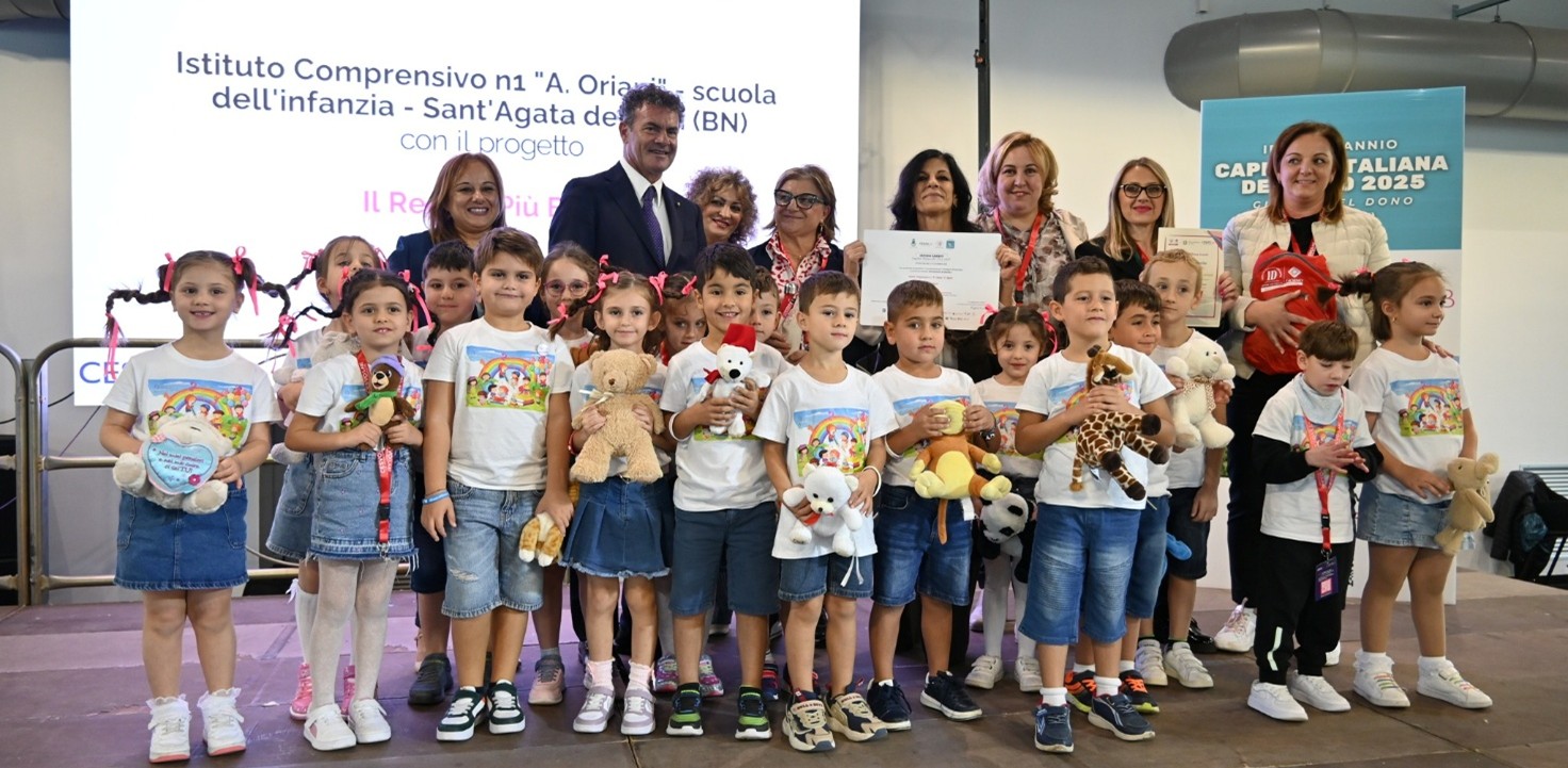 Davanti ad un pubblico di oltre 500 studenti provenienti da tutta Italia, il dono è stato protagonista del programma nazionale Irpinia Sannio Capitale Italiana del Dono 2025, promosso dall'Istituto Italiano della Donazione in collaborazione con il CSV Irpinia Sannio ETS, non solo grazie all'evento di premiazione tenutosi il 3 ottobre presso il Palavetro di Pietrelcina, ma anche grazie alle attività e ai laboratori gratuiti, dedicati alle scuole di ogni ordine e grado, che hanno portato i ragazzi alla scoperta dei luoghi e delle tradizioni del Sannio a Benevento, Mercogliano (AV) e Pietrelcina: un'occasione unica per scoprire e vivere il valore del dono, della solidarietà e dell'impegno civico attraverso laboratori didattici ed educativi, attività creative e inclusive, visite culturali e naturalistiche, spettacoli e musica, incontri con testimonial del mondo sociale, culturale e artistico. Il programma completo delle iniziative è disponibile al seguente link. Attività pensate per trasmettere il valore del dono in tutte le sue forme: dalla solidarietà al volontariato, dalla cura dei beni comuni alla cittadinanza attiva.