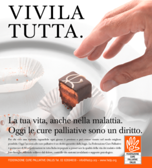 In occasione della XVII Giornata Nazionale delle Cure Palliative la Federazione Cure Palliative lancia la campagna pubblicitaria, affidata a McCann, dal titolo “VIVILA TUTTA”, destinata principalmente alle troppe persone che non sanno cosa siano le cure palliative o ne hanno una visione distorta in negativo.