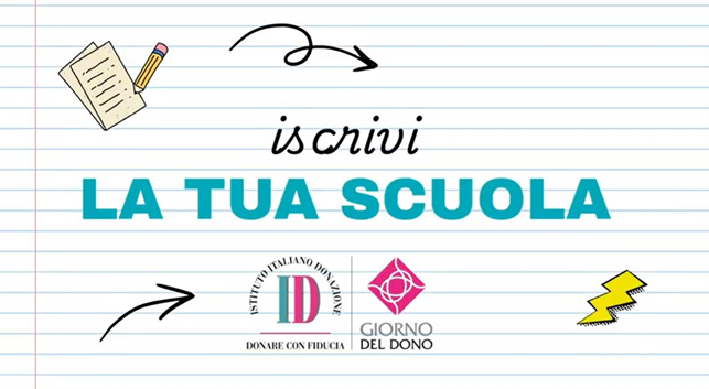 L'Istituto Italiano della Donazione (IID), nell'ambito del protocollo di intesa con il Ministero dell'Istruzione e del Merito, invita anche quest'anno le scuole a partecipare al Giorno del Dono 2026, l'iniziativa che da oltre dieci anni celebra e promuove la cultura del dono in tutta Italia portando nelle aule i valori della solidarietà, della cittadinanza attiva e della partecipazione democratica, per offrire a studenti e docenti un'esperienza educativa concreta e riconosciuta a livello nazionale.