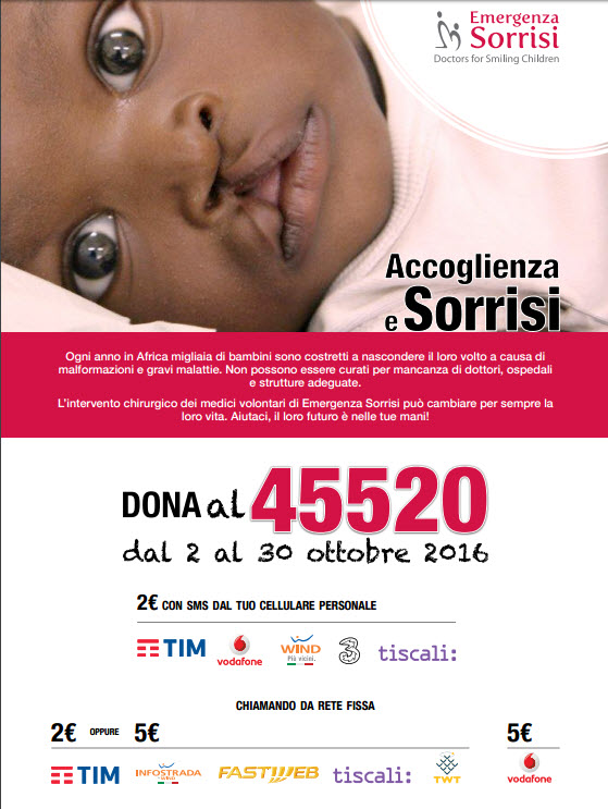 Per maggiori informazioni visita il sito http://www.emergenzasorrisi.it/campagna-sms-2016/